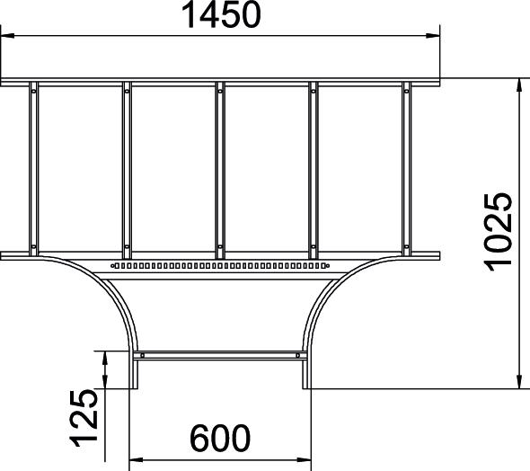 Product descriptionT piece, horizontal, with welded rung for all cable ladder types of 110 mm side height.