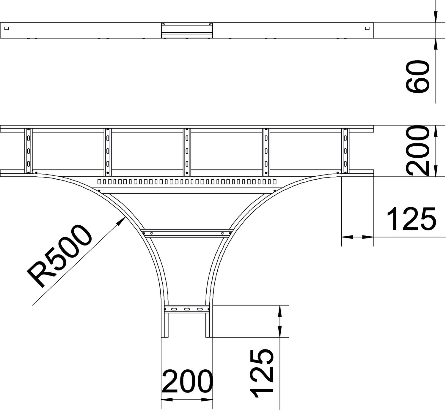 Product descriptionT piece, horizontal, for all cable ladder types of 60 mm side height.