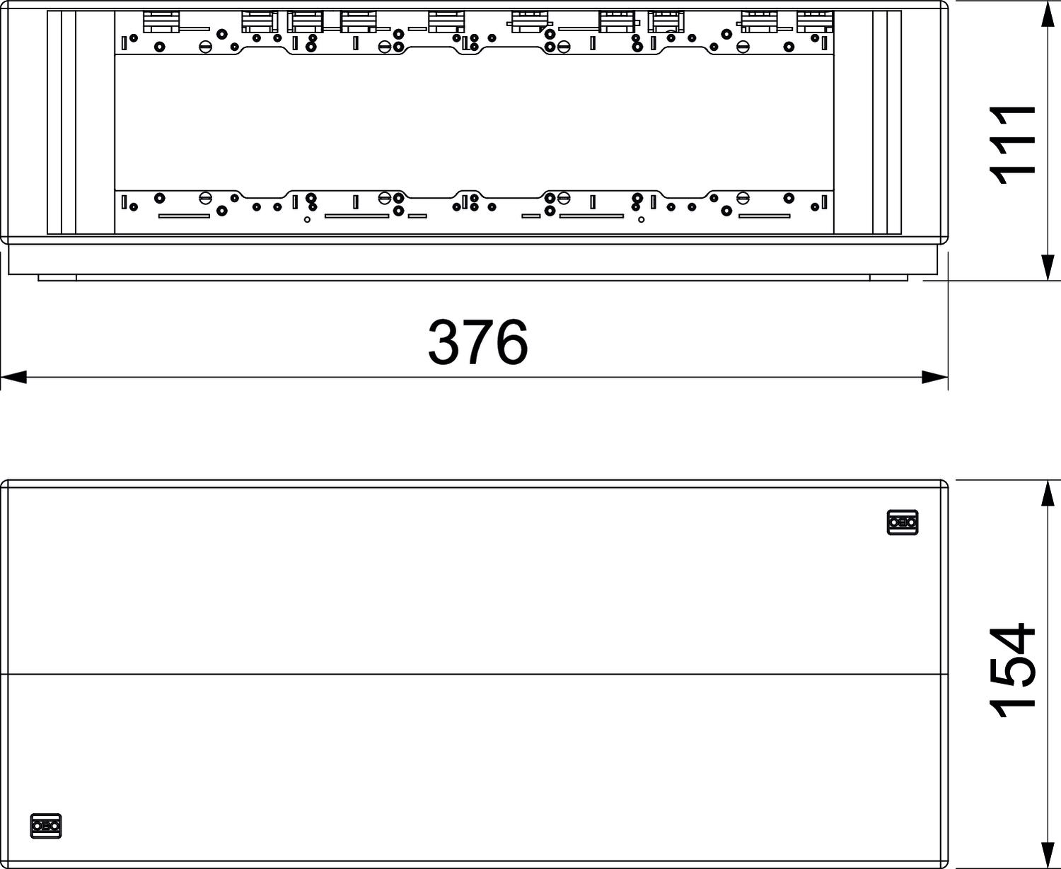 CO2 Footprint (GWP) Cradle-to-Gate 3,5897 kg CO2e / 1 Piece Colour Iron grey; RAL 7011 Dimension 375x154x109 Height 108,5 mm Length 375,5 mm Material Polyamide Number of installable devices 12 Number of installable devices, front side 4 Number of installable devices, rear side 4 Suitable for standard switch material yes Suitable for wet care yes Width 154 mm - All types