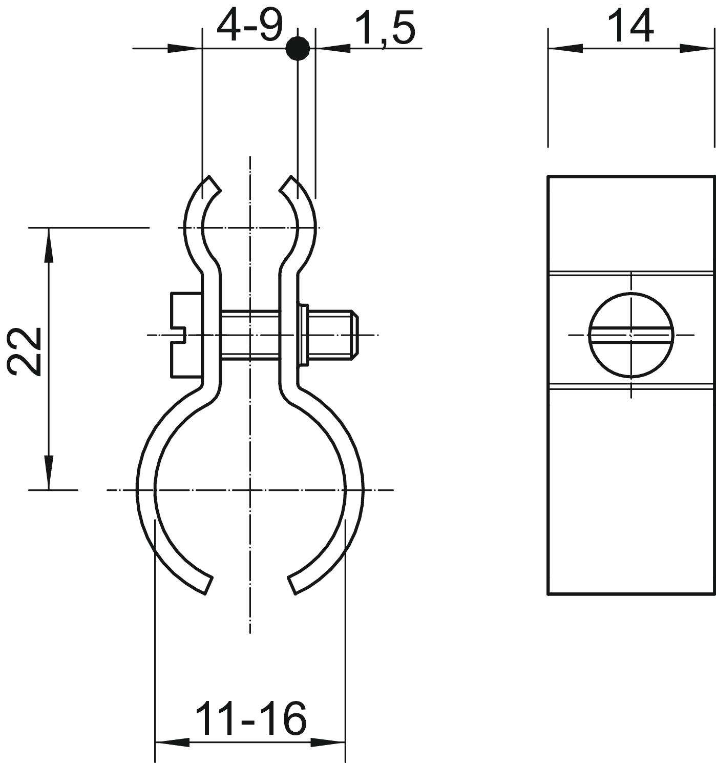 Product descriptionTensioning wire clip for cable 4‒9 mm 11‒16 mm. With V4A bolt M4x14.