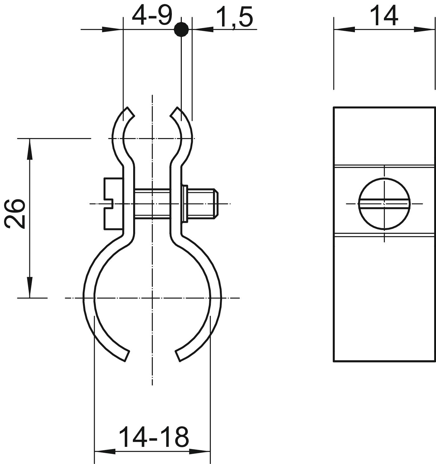 Product descriptionTensioning wire clip for cable 4‒9 mm 14‒18 mm. With V4A bolt M4x14.