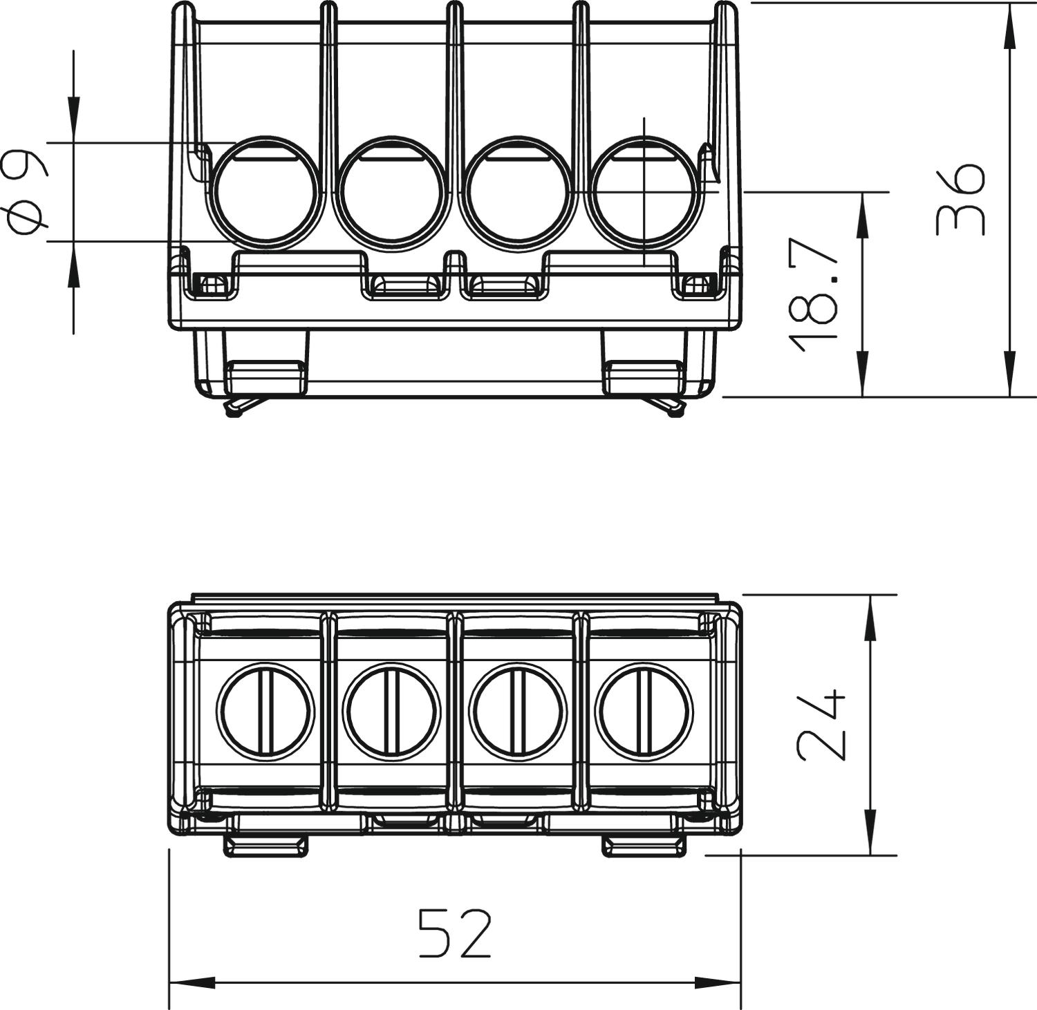 Closing plate required no CO2 Footprint (GWP) Cradle-to-Gate 0,1639 kg CO2e / 1 Piece Colour Light grey Connectable conductor cross-section, single-wire, max. 35 mm² Connectable conductor cross-section, single-wire, min. 10 mm² Connection position Side Cross-section Max. connectable conductors per terminal max. 4 x 35 mm², 4 x 25 mm², 8x16 mm² or 12 x 10 mm² mm² Dimension 35mm² Explosion-tested version no Height 36 mm Insulation material Thermoplast Length 52 mm Material Polyamide No. of terminals 4 Nominal cross-section, max. 35 mm² Nominal cross-section, min. 16 mm² Nominal current 125 A Nominal voltage 400 V Number of screwless terminals per pole 1 Pole number 1 Transparent no Version of electrical connection 1 Screw connection Width 24 mm - All types