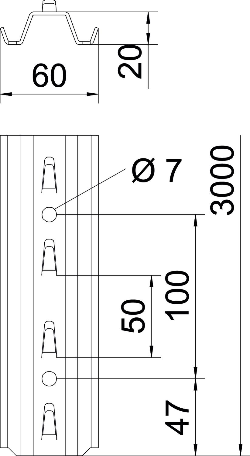 Breakable no CO2 Footprint (GWP) Cradle-to-Gate 8,609 kg CO2e / 1 Piece Colour zinc Dimension 3000mm Height 20 mm Length 3000 mm Maintain electrical functions no Material Steel Plate thickness 2 mm Profile shape Flat profile Surface Hot-dip galvanised Type of perforation Without Version for Single profile Width 60 mm With toothing no - All types