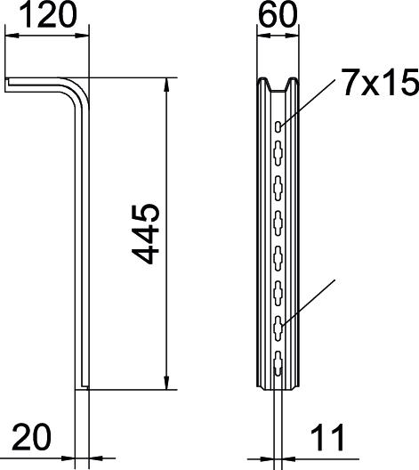 CO2 Footprint (GWP) Cradle-to-Gate 1,7223 kg CO2e / 1 Piece Colour zinc Dimension L445mm Dimension H 120 mm Dimension L 445 mm Height 120 mm Length 445 mm Maintain electrical functions no Material Steel Surface Strip galvanized Version for S profile Width 60 mm Technical data