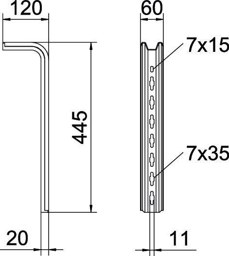 CO2 Footprint (GWP) Cradle-to-Gate 1,6365 kg CO2e / 1 Piece Colour zinc Dimension L445mm Dimension L 445 mm Height 120 mm Length 445 mm Maintain electrical functions no Material Steel Surface Hot-dip galvanised Version for S profile Width 60 mm Technical data