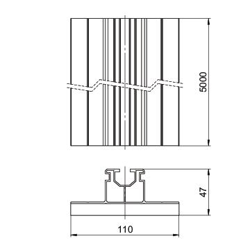Cable duct optional no Cable duct, integrated no Dimension 5000x110x47 Height 47 mm Length 5000 mm Material Aluminium Section modulus Sx 3210 mm³ Section modulus Sy 3840 mm³ Surface Bright Width 110 mm - All types