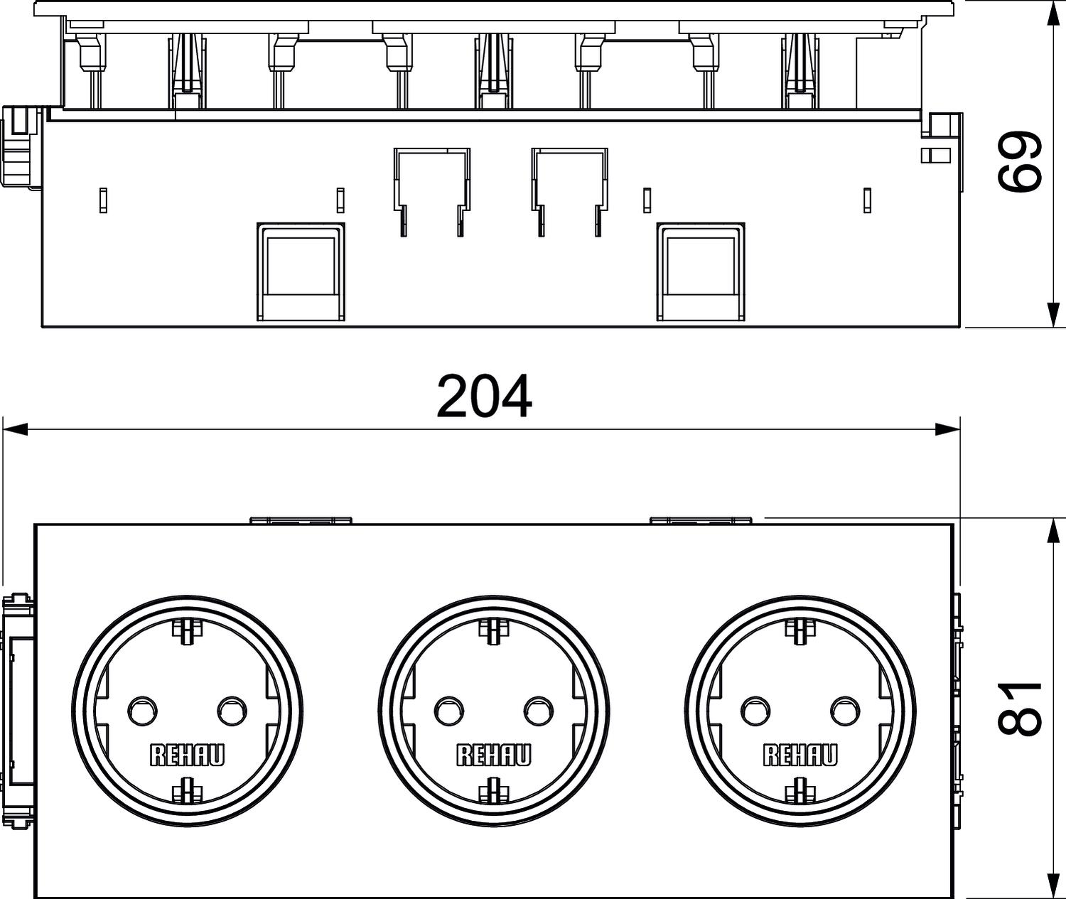 Closable no Coding no Colour Pure white; RAL 9010 Connection type Screwless terminal Cover Complete housing Dimension 206x82x71 Ejection mechanism no Error current protection no Fastening type Miscellaneous For more difficult conditions (according to VDE) no Halogen-free yes Height 82 mm Hinged cover no Insulated installation yes Labelling panel no Mounting type Device installation duct Nominal current 16 A Nominal voltage 250 V Number of modules (for modular construction) 3 Number of units 3 Printed label/coding Without printing Protection rating IP20 Rotated central insert no Socket angle 0° Special power supply Without special power supply Surface version Matt Surge protection no Transparent no Width 206 mm With fine-wire fuse no With functional lighting no With on/off switch no With orientation lighting no - All types