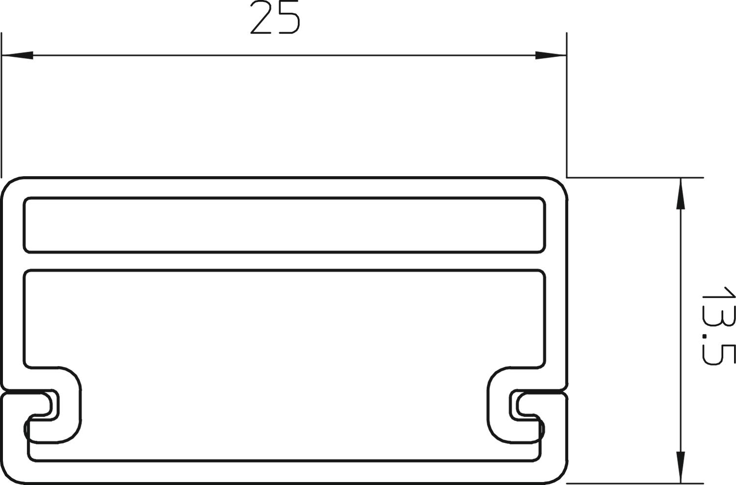 Antibacterial treatment no Cable retaining clip no CO2 Footprint (GWP) Cradle-to-Gate 0,3231 kg CO2e / 1 Meter Colour Oyster white; RAL 1013 Delivery on a roll no Dimension 13x25x2000 Duct connector no Fastening type Base perforation Halogen-free no Height 13,5 mm Length 2000 mm Maintain electrical functions no Material Polyvinylchloride Permitted temperature range, max. 60 °C Permitted temperature range, min. -5 °C Protection rating IP30 Protection rating IK code IK04 Protective film no Version, cable trunking cover Loose Width 25 mm - All types