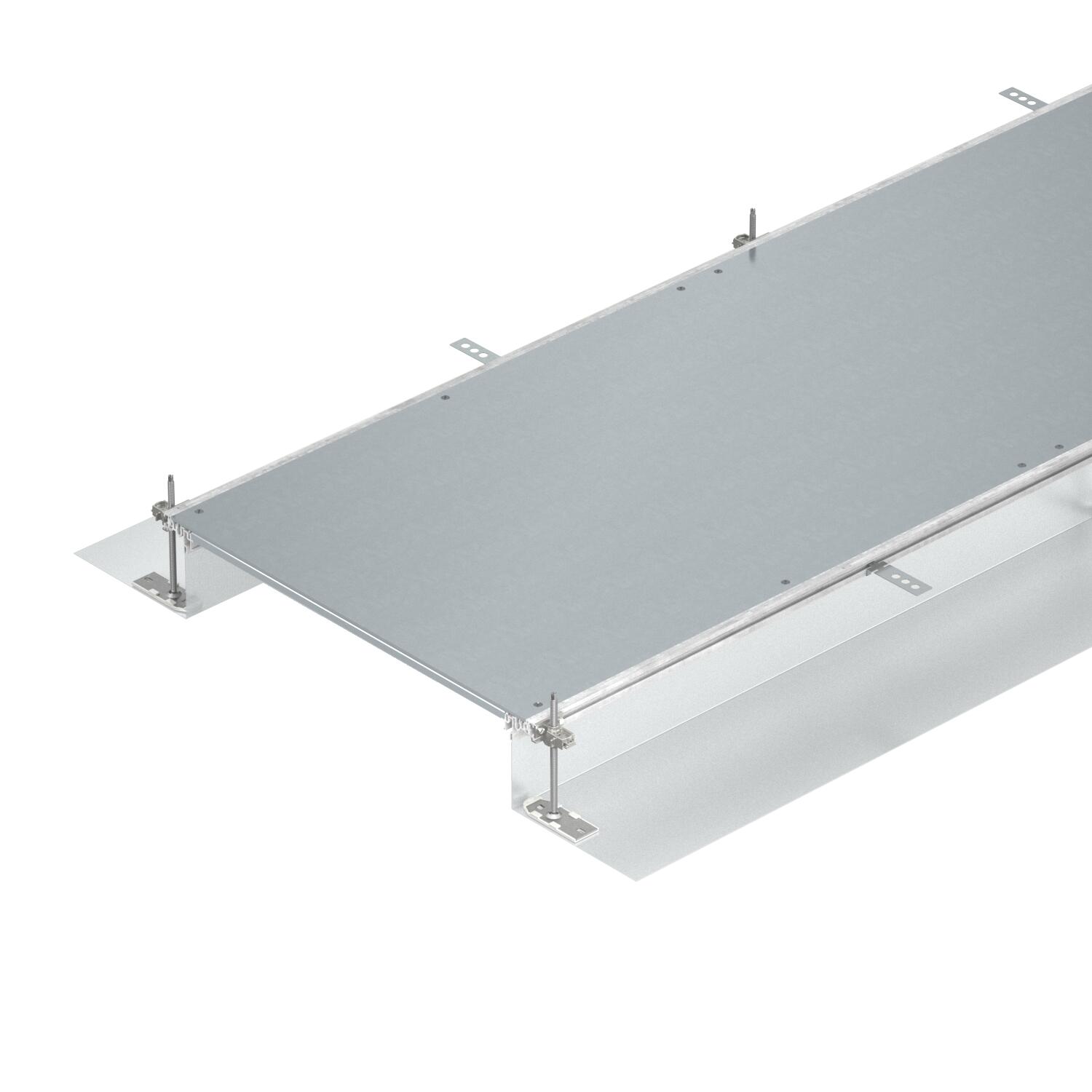 Product descriptionReady-to-mount trunking unit for cable routing consisting of 3 blind lids, 2 side profiles with attached flexible side wall made of metal mesh, floor covering contact profiles with a height H of 3 mm. The scope of supply contains six height-adjustable fastening brackets, six screed anchors and three lid butt seals for nominal trunking widths 200, 300 and 400mor six lid butt supports for trunking widths 500 and 600. The essential levelling units (observe height adjustment) for the 400, 500 and 600 lid supports are not contained in the scope of delivery and should be ordered separately. On delivery, the trunking lids are screwed on.
