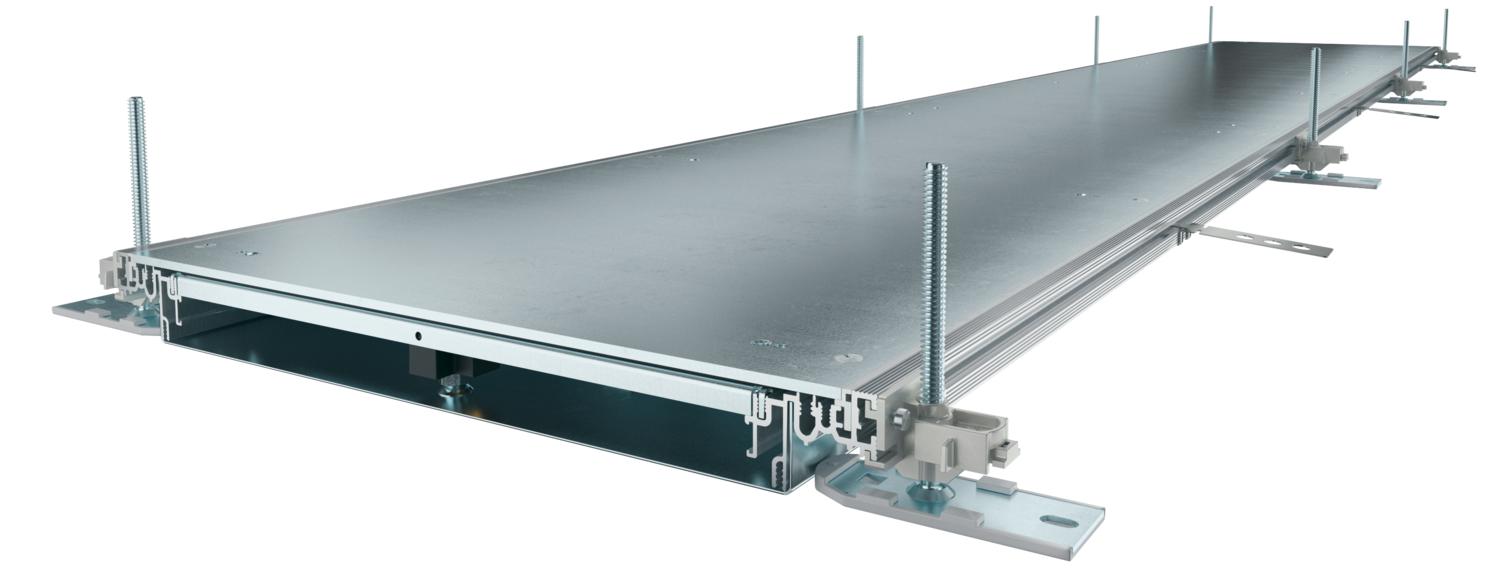 Product descriptionReady-to-mount trunking unit with three self-locking blanking covers for cable laying, consisting of the trunking base (floor trough with side and floor covering guide profiles) and trunking lid. Floor trough with holding shackles for self-contacting mounting of dividers. The scope of supply contains six height-adjustable wall fixing brackets, six screed anchors and three cover joint supports (for nominal trunking widths 200 and 300) or three height-adjustable cover joint supports (for nominal trunking widths 400, 500 and 600). Trunking lid screwed down when delivered.