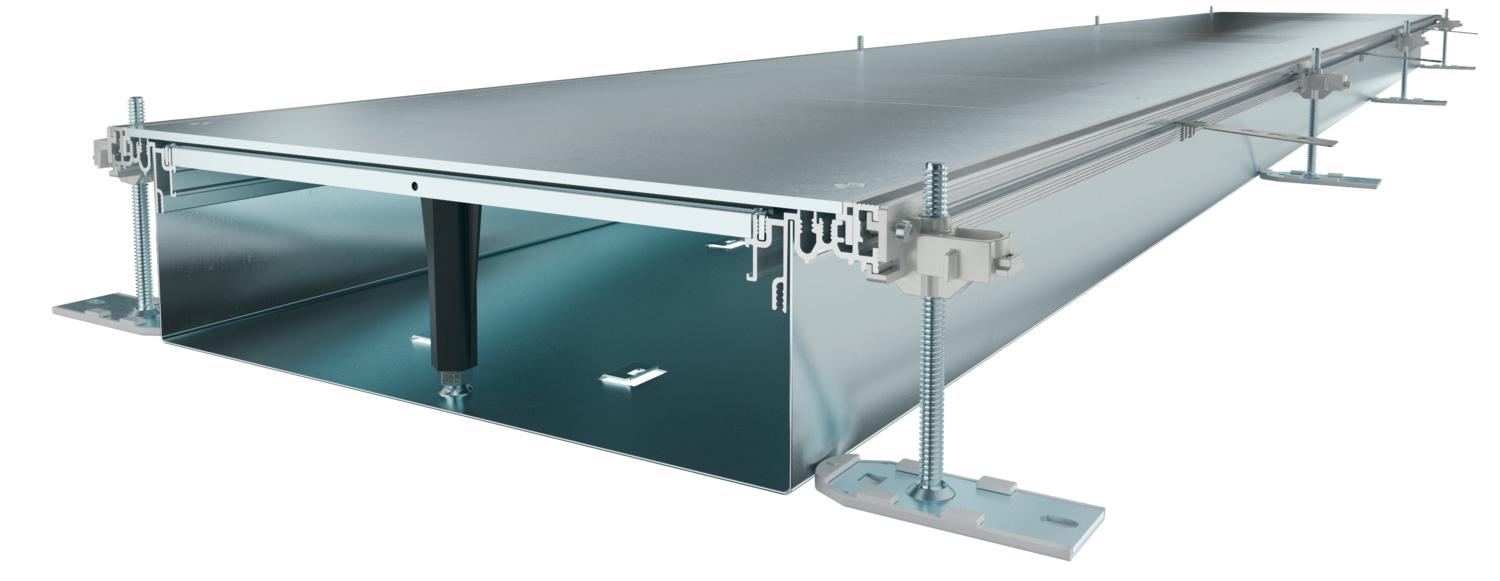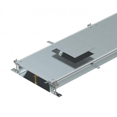 Product descriptionReady-to-mount trunking unit with three or six device installation lids for cable laying and the installation of installation units of nominal size 6, consisting of the trunking base (floor trough with side and floor covering guide profiles) and trunking lid with blank mounting opening. Floor trough with holding shackles for self-contacting mounting of dividers. The scope of supply contains six height-adjustable wall fixing brackets, six screed anchors and three height-adjustable cover joint supports for nominal trunking width 400 or six height-adjustable cover joint supports for nominal trunking widths 500 and 600. Trunking lid screwed down when delivered.