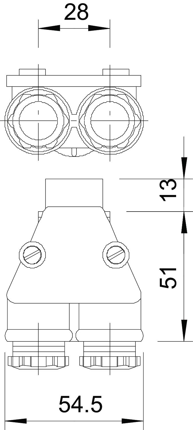 113/M20: with connection thread M20 x 1.5, 2 half glands Pg 13.5 for cable diameter 6.5–10.5 mm.