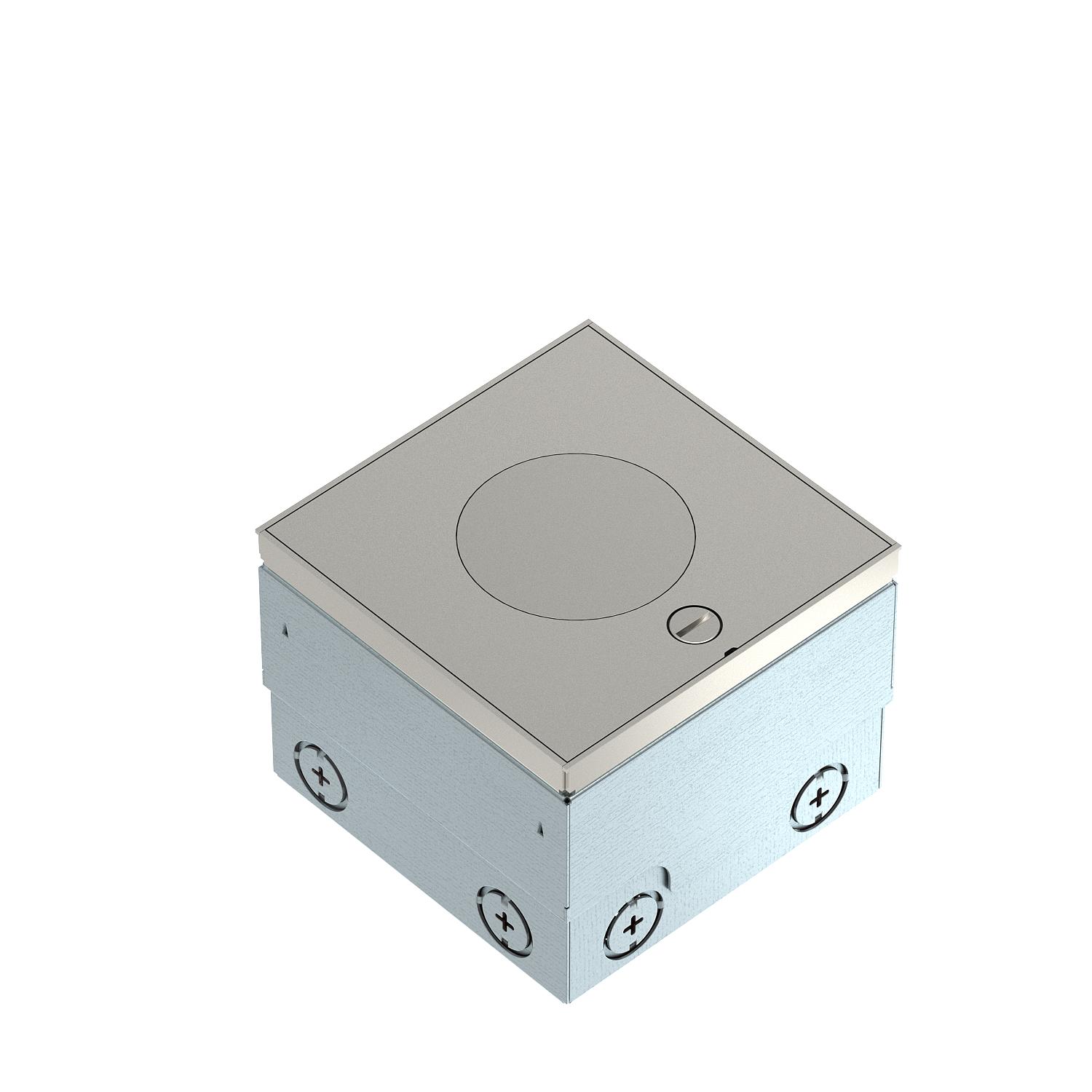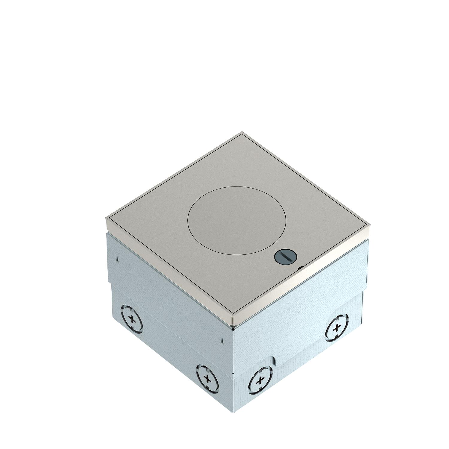 Product descriptionSquare floor socket for use in wet-care cavity and screed floors in indoor areas. Cable exit for height-adjustable tube body. Installation housing with pre-marked insertion openings for pipes (M20/M25). Cover adjustable to top edge of floor covering using four height-adjustment supports. The minimum installation depth is 110 mm, the height-adjustment range is +25 mm.