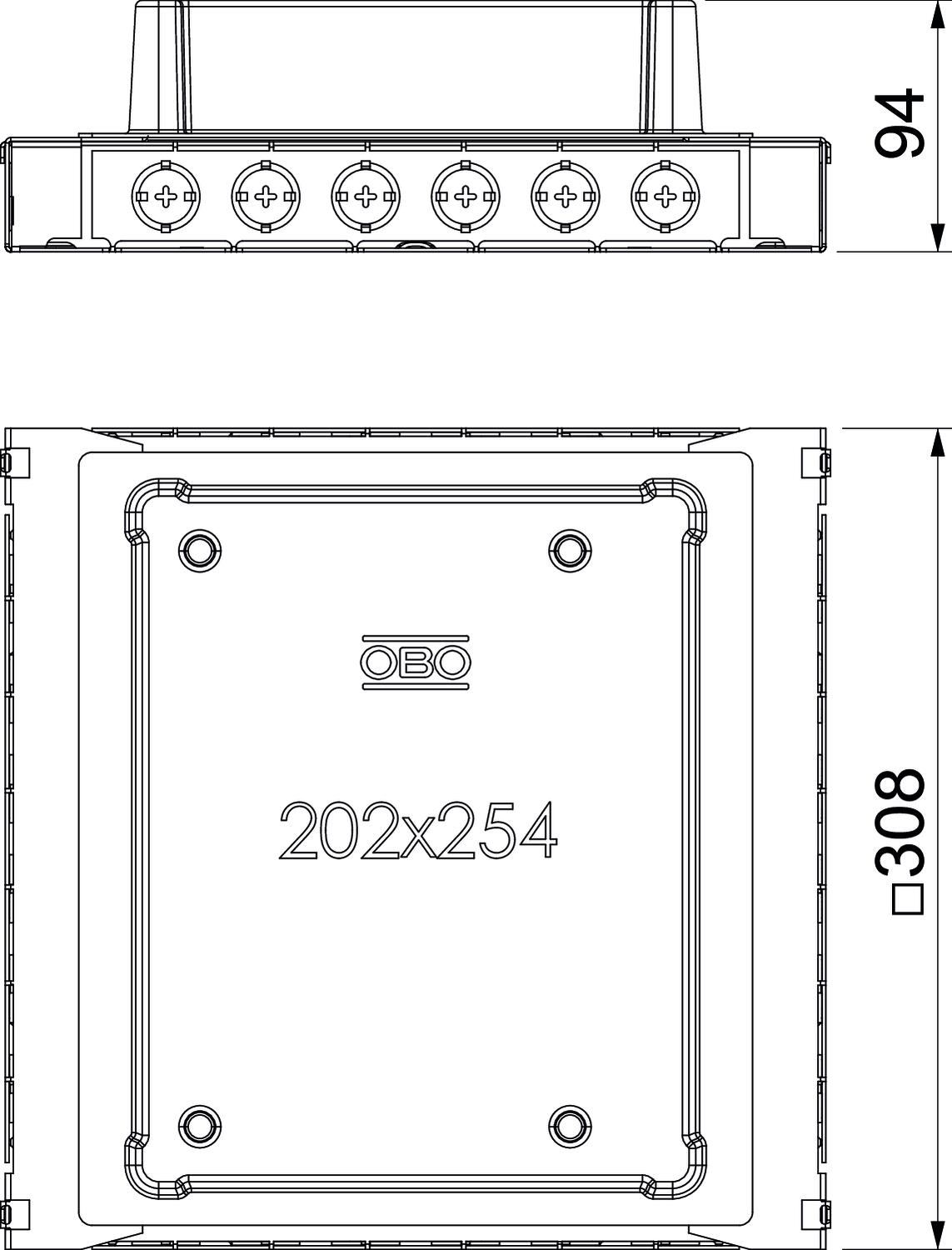 Product descriptionUnderfloor outlet box with fixed, unchangeable 202 x 254 mm installation opening for an installation unit of nominal size 6. The mounting opening is created using the screed protection cover contained in the scope of supply. The underfloor box possesses installation openings for a 2 or 3-compartment sheet steel underfloor duct of nominal size 25038 as well as six M20 or M25 installation pipes on all four sides. The box is principally suited for use in floor structures in cement screed with a structure height of up to 90 mm.