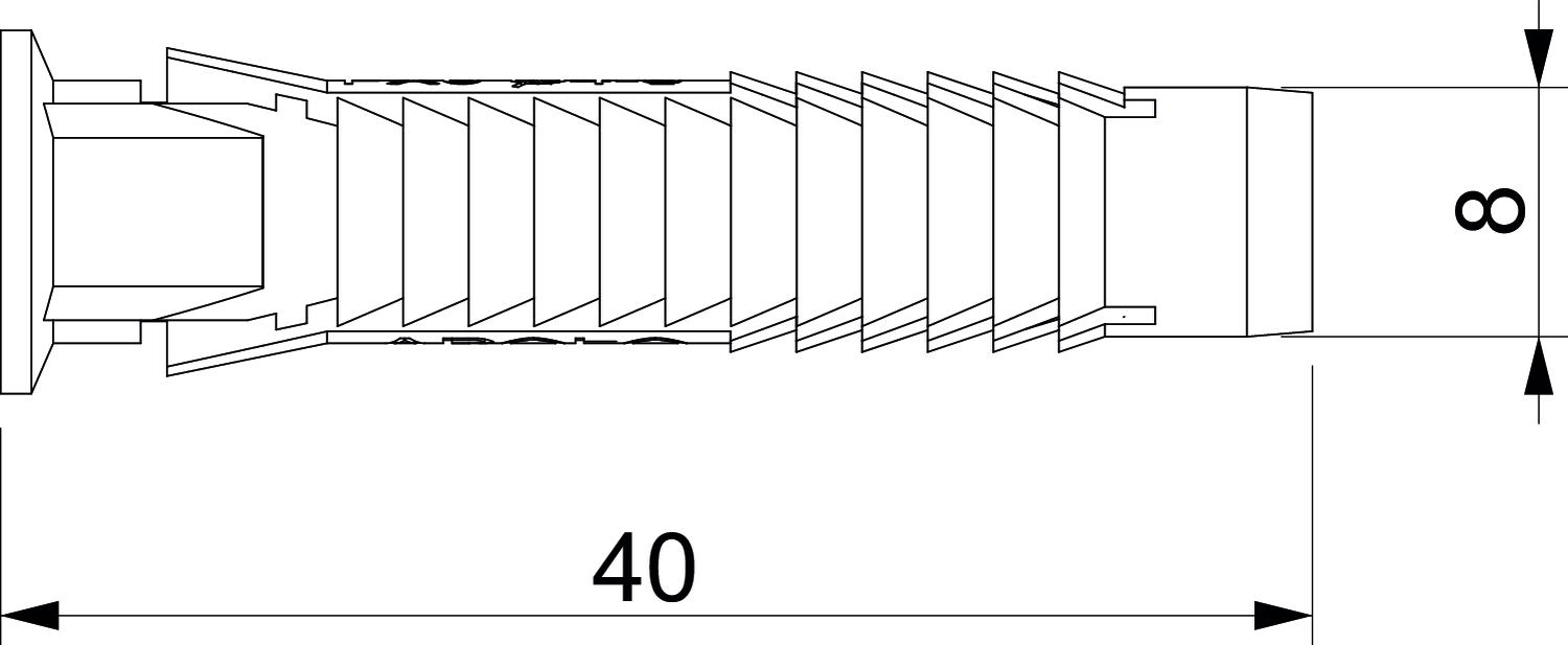Colour Light grey Diameter 8 mm Dimension 8x40 Dimension D 8 mm Dimension L 40 mm Drill hole diameter, min. 8 mm Length 40 mm Material Polyethylene Pull-out value 520 N Suitable for fastening with cable ties no Suitable for hexagonal wood screw yes Version for Universal anchor With bolts no Wood screws 4,5-6 - All types
