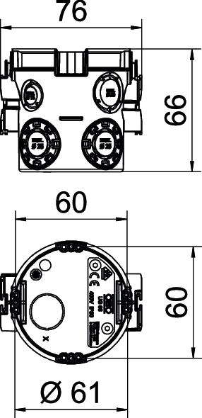 Airtight no CO2 Footprint (GWP) Cradle-to-Gate 0,0848 kg CO2e / 1 Piece Combination entries Ø 20 / 25 mm 6 Cover Without Cover fastening Screws , Device fixing Screws or spreading claws Diameter 60 mm Dimension Ø60mm, H66mm Entry from rear yes Flame-resistant acc. to VDE 0471/IEC 60695-2-11, test temperature 650°C for pipe diameter 20/25 mm Halogen-free yes Height 66 mm Impact-resistant yes No. of entries 13 Nominal cross-section, max. 2,5 mm² Nominal cross-section, min. 1,5 mm² Pipe entries Ø 20 mm 3 Protection rating IP30 Rated voltage 400 V Shape Round Type of entry NYM cables, data cables and corrugated pipes Type of housing penetration Break-out opening With bolts no With nail strap no - All types