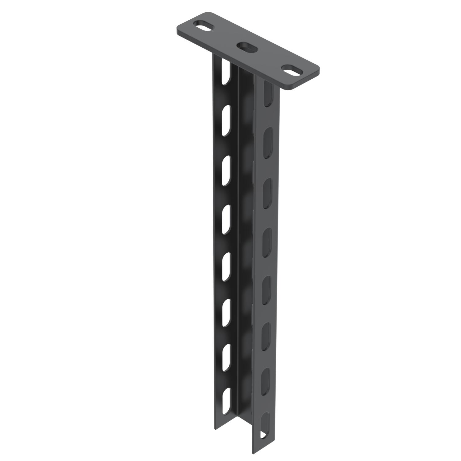 Product descriptionSuspended support (U profile) in the dimensions of 50 x 30 mm with welded-on head plate. For fastening to horizontal concrete ceilings and steel girders. Powder-coated in jet black (RAL 9005) From a bracket width of 400 mm or when the bracket is mounted on the end of the suspended support, it is recommended to use the spacer type DSK 25.