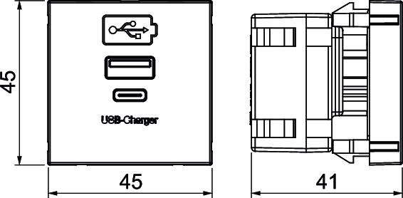 Colour Pure white; RAL 9010 Combination Basic element with central cover plate Depth 45 mm Dimension 45x45x42 Fastening type Lock Halogen-free yes Height 45 mm Hinged cover no Lamp-wire connector no Material Polycarbonate Protection rating IP20 Strain relief option no Support ring no Surface version Matt Transparent no Use USB Width 45 mm With dust protection no With printed label no - All types
