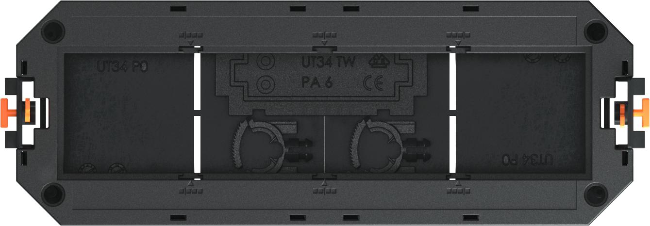 Product descriptionUniversal support with two strain reliefs, mounting bridges, partition and UT4 P4 cover plate for installation of 4 Modul 45 devices in device installation units of nominal sizes R7, R9 and 9.