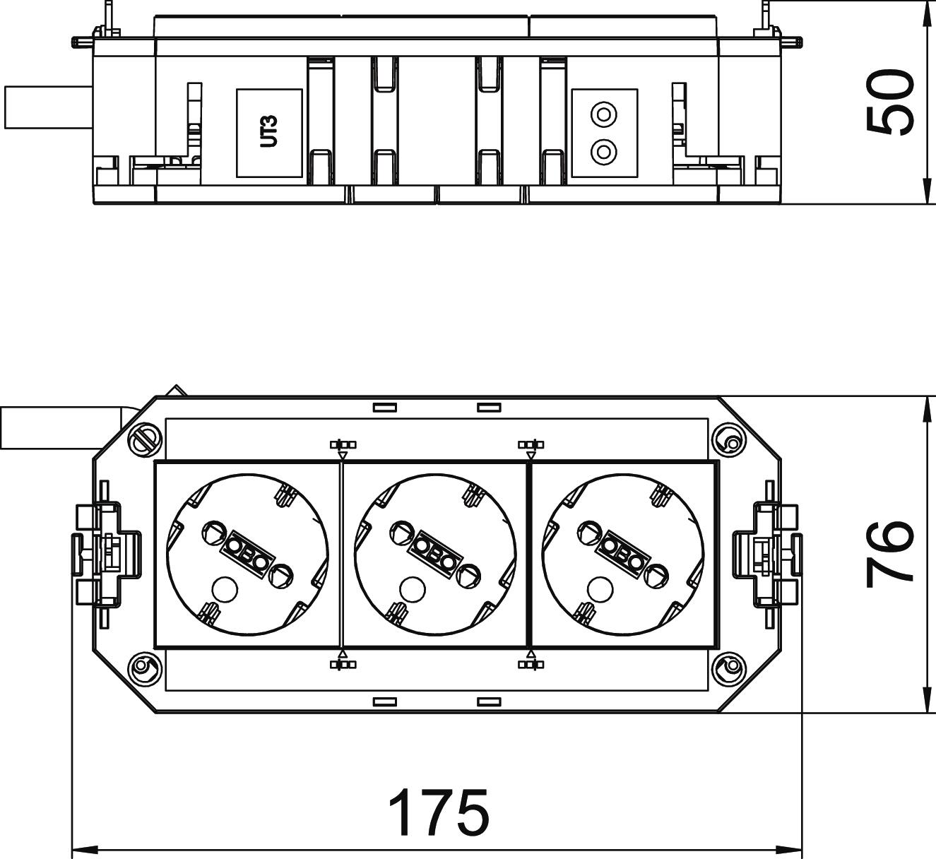 Product descriptionThe ready-for-connection UTC3 universal support possesses 3 pre-installed 33° protective contact sockets in white of 16 A. Suitable for VL connection cables and device installation units of nominal size 2, 4, R4, 6 and R7.