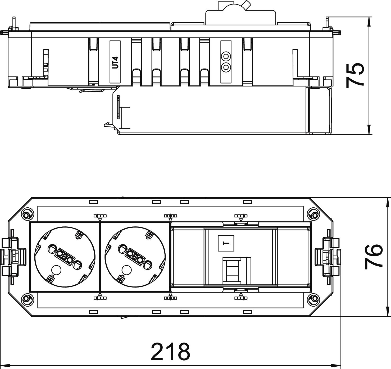 The ready-for-connection UTC4 FI universal support has 2 protective contact sockets protected with FI/LS. Internal wiring with 2.5 mm². Please note the connection requirements (and also the selectivity).