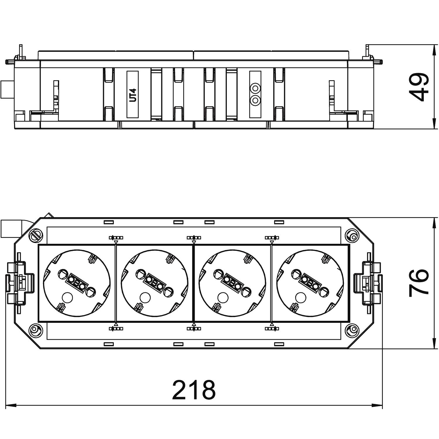 Product descriptionThe ready-for-connection UTC4 universal support possesses 4 pre-installed 33° protective contact sockets in orange, 250 V~, 16 A. Suitable for VL connection cables and device installation units of nominal size R7, R9 and 9.
