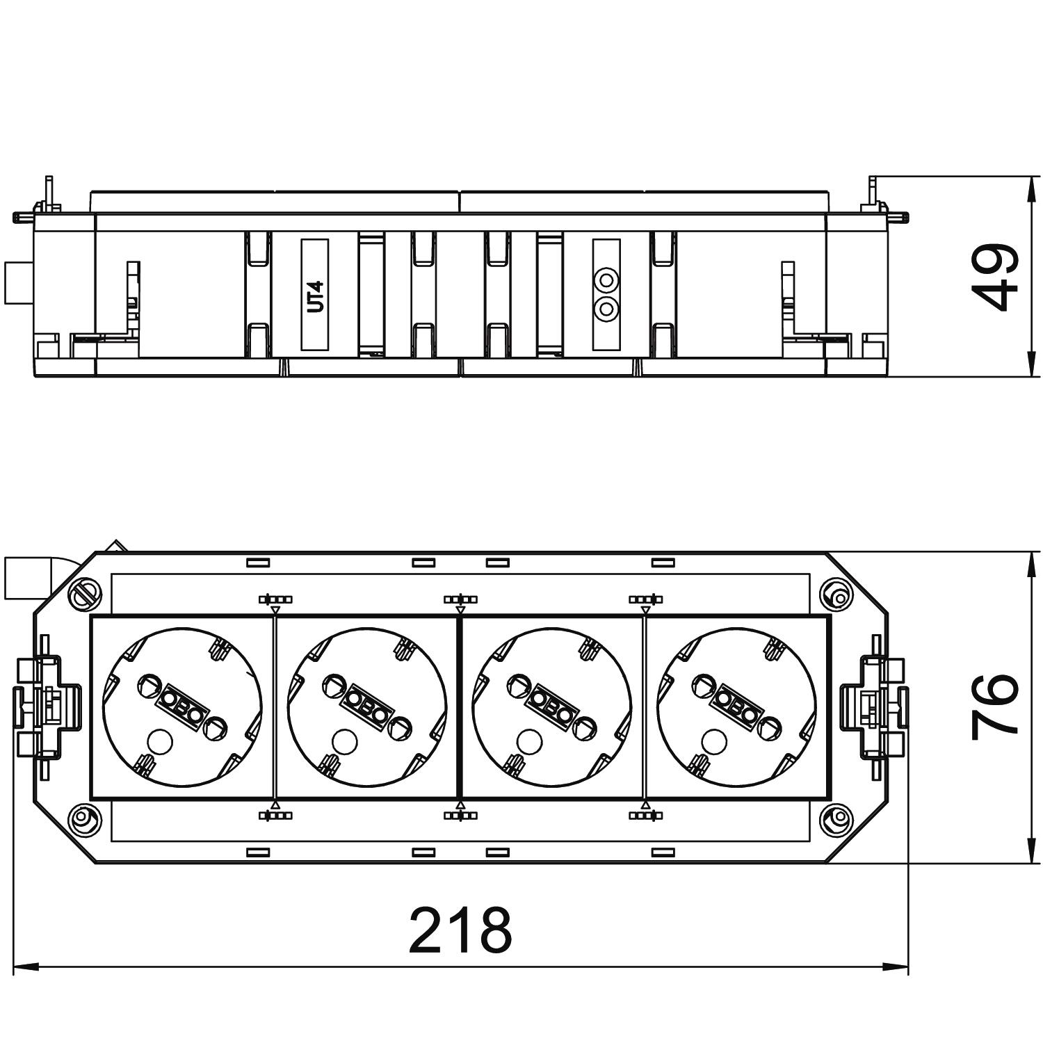 Product descriptionThe ready-for-connection UTC4 universal support possesses 4 pre-installed 33° protective contact sockets in white, 250 V~, 16 A. Suitable for the VL connection cables and device installation units of nominal size R7, R9 and 9.