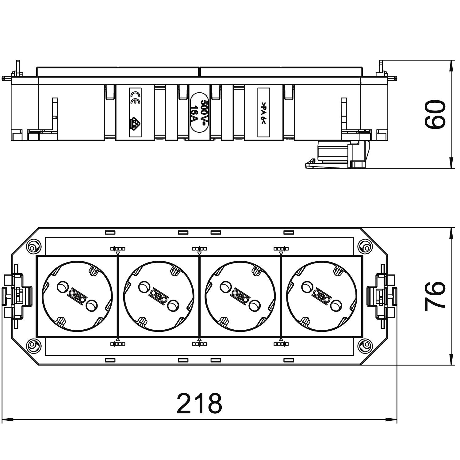 Circuit 2 CO2 Footprint (GWP) Cradle-to-Gate 1,1196 kg CO2e / 1 Piece Dimension 208x76x45 Height 60 mm Length 218 mm Line cross-section 2,5 mm² Number of connections 2 Number of installable devices 4 Plug connector system, system-specific yes Plug-in system GST18 Socket combination 2x double Surge protection no Version for Double pure white/double pure orange Width 76 mm - All types