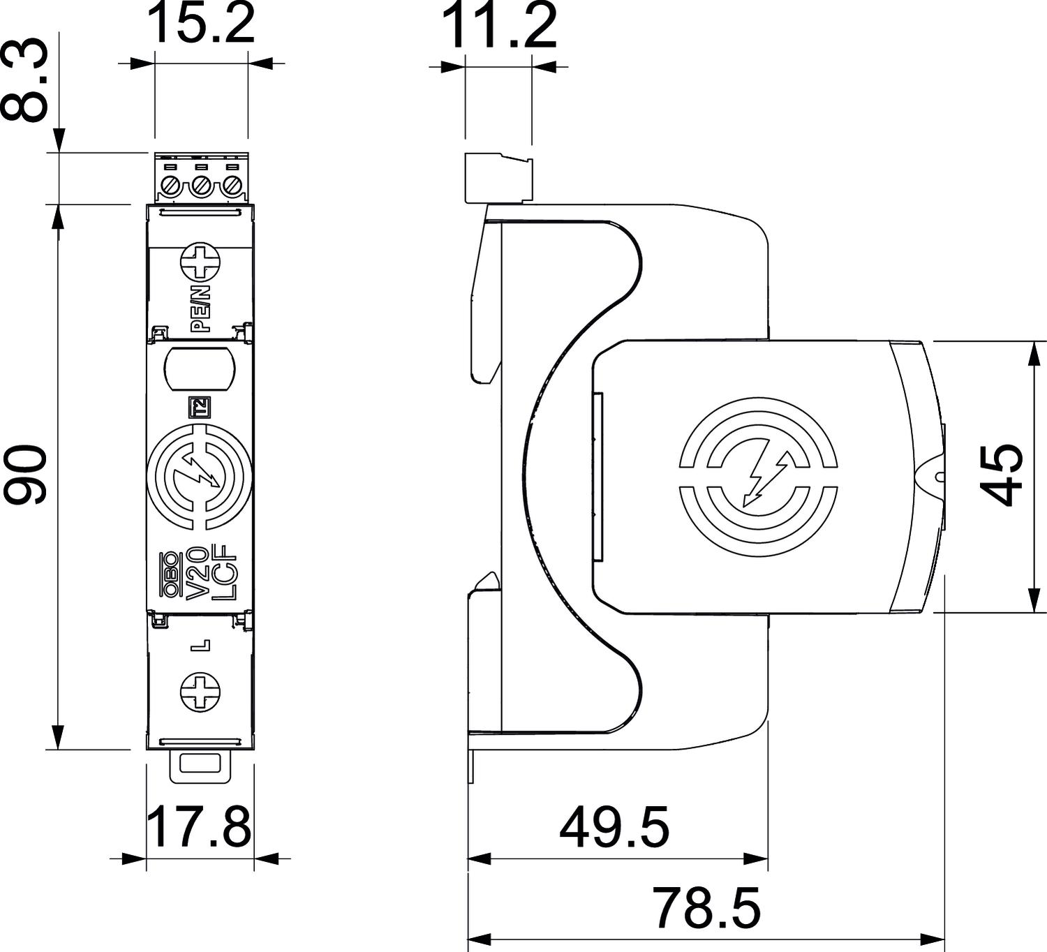 • Discharge capacity to 30 kA (8/20) per pole through a high-performance series connection of varistor and spark gap