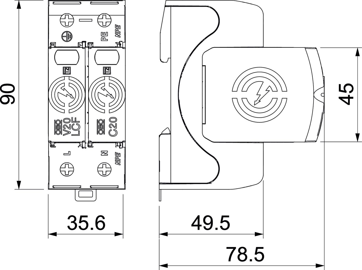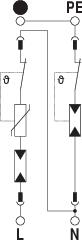 • Discharge capacity to 30 kA (8/20) per pole through a high-performance series connection of varistor and spark gap