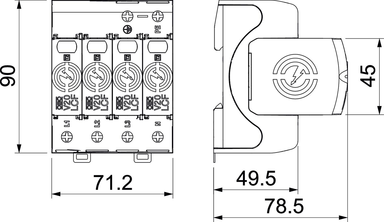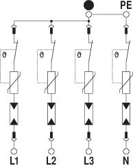 • Discharge capacity to 30 kA (8/20) per pole through a high-performance series connection of varistor and spark gap