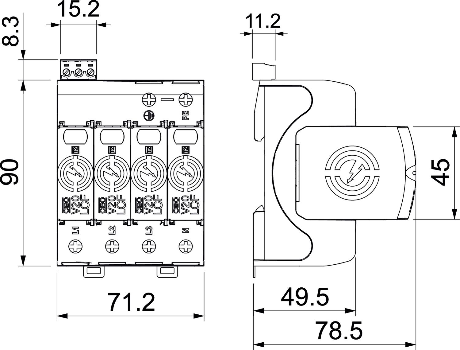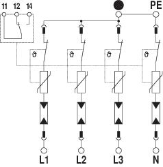 • Discharge capacity to 30 kA (8/20) per pole through a high-performance series connection of varistor and spark gap