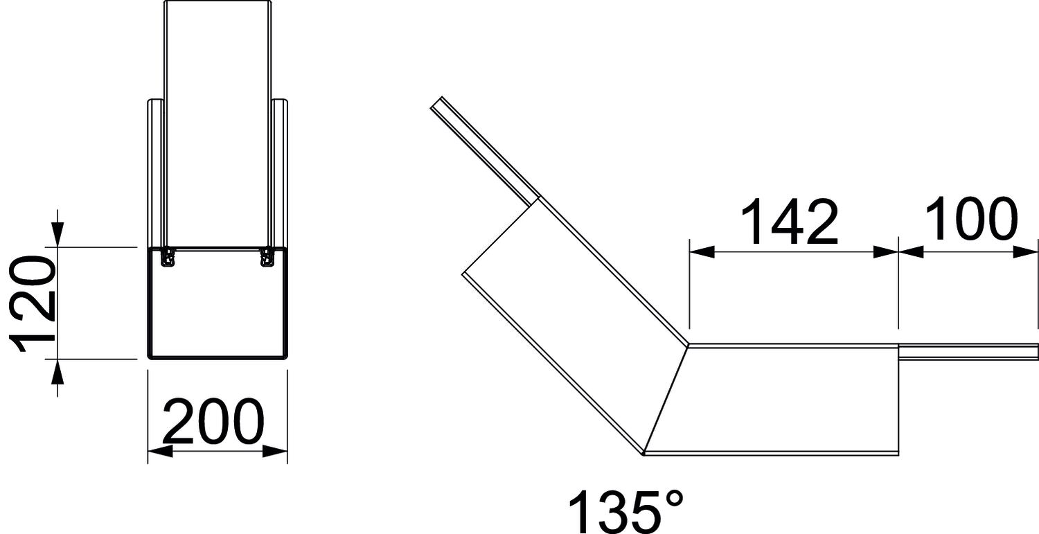 Angle of the bend 45 ° Classification EI − installation duct 90 CO2 Footprint (GWP) Cradle-to-Gate 7,523 kg CO2e / 1 Piece Colour Pure white; RAL 9010 Cover fastening Miscellaneous Dimension 422x200x291 Dimension A 142 mm Dimension B 200 mm Dimension H 120 mm Jacketing Steel Material Steel Number of flammable sides 4 Partitions possible no Surface Powder-coated Usable cross-section 18500 mm² With perforation yes - All types