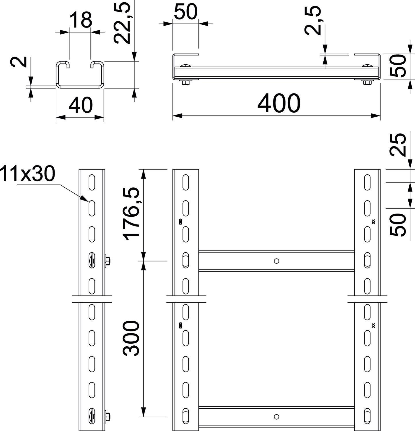 CO2 Footprint (GWP) Cradle-to-Gate 15,8862 kg CO2e / 1 Meter Colour zinc Dimension 400x3000mm Dimension B 400 mm Fire protection Maintenance of electrical function of standard support structure Height 50 mm Length 3000 mm Maintain electrical functions yes Material Steel Rung distance 300 mm Rung slot dimension 2,00 Rustproof steel, pickled no Side perforation yes Surface Hot-dip galvanised Version of the rungs Profile unperforated Width 400 mm - All types