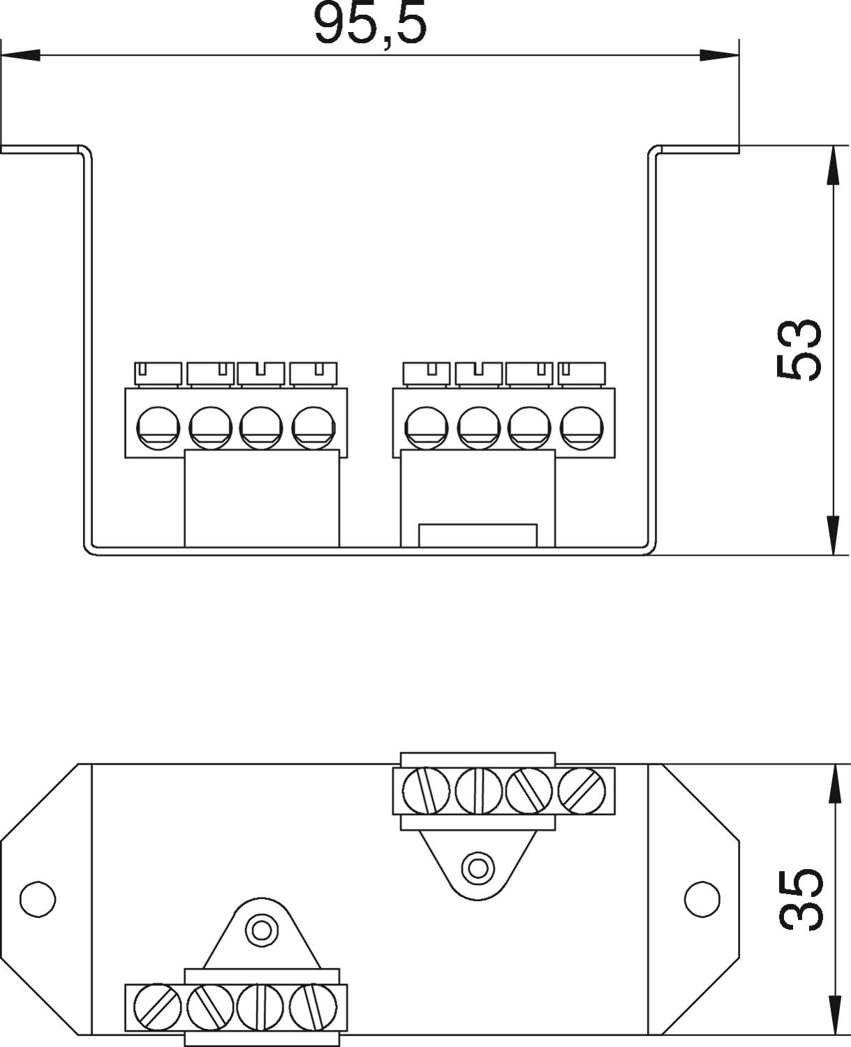 - Base element with hat rail 35 mm, N terminal strip 4 x 10 mm² and PE terminal strip 4 x 10 mm²