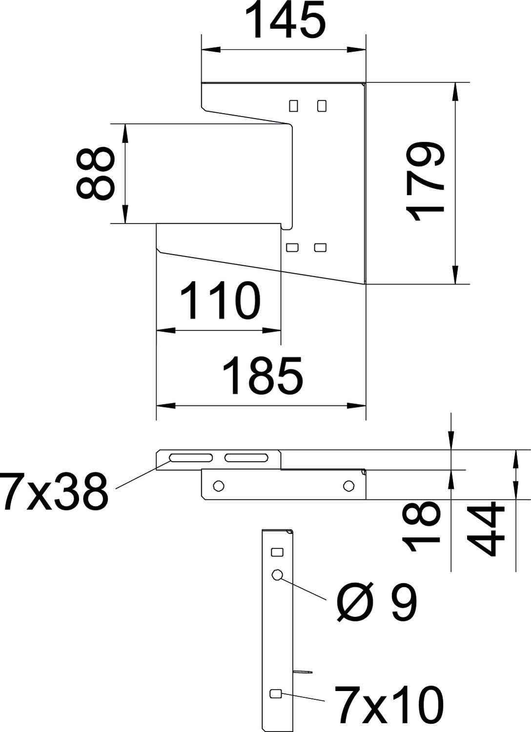 Adjustable no CO2 Footprint (GWP) Cradle-to-Gate 0,8834 kg CO2e / 1 Piece Colour zinc Dimension B100mm Dimension A 145 mm Dimension B 110 mm Dimension H 179 mm Dimension H1 (mm) 88 Dimension L 185 mm F in kN ceiling 0,25 kN F in kN wall 0,25 kN for width min. 100 Height 179 mm Hole diameter 7 mm Length 185 mm Maintain electrical functions no Material Steel Material thickness 1 mm Suitable for cable ladder yes Suitable for cable tray yes Suitable for mesh cable tray yes Suitable for metric threaded rod 8 Surface Strip galvanized Tray fastening Screw-on Version for Suspension bracket (C clamp) Width 110 mm - All types