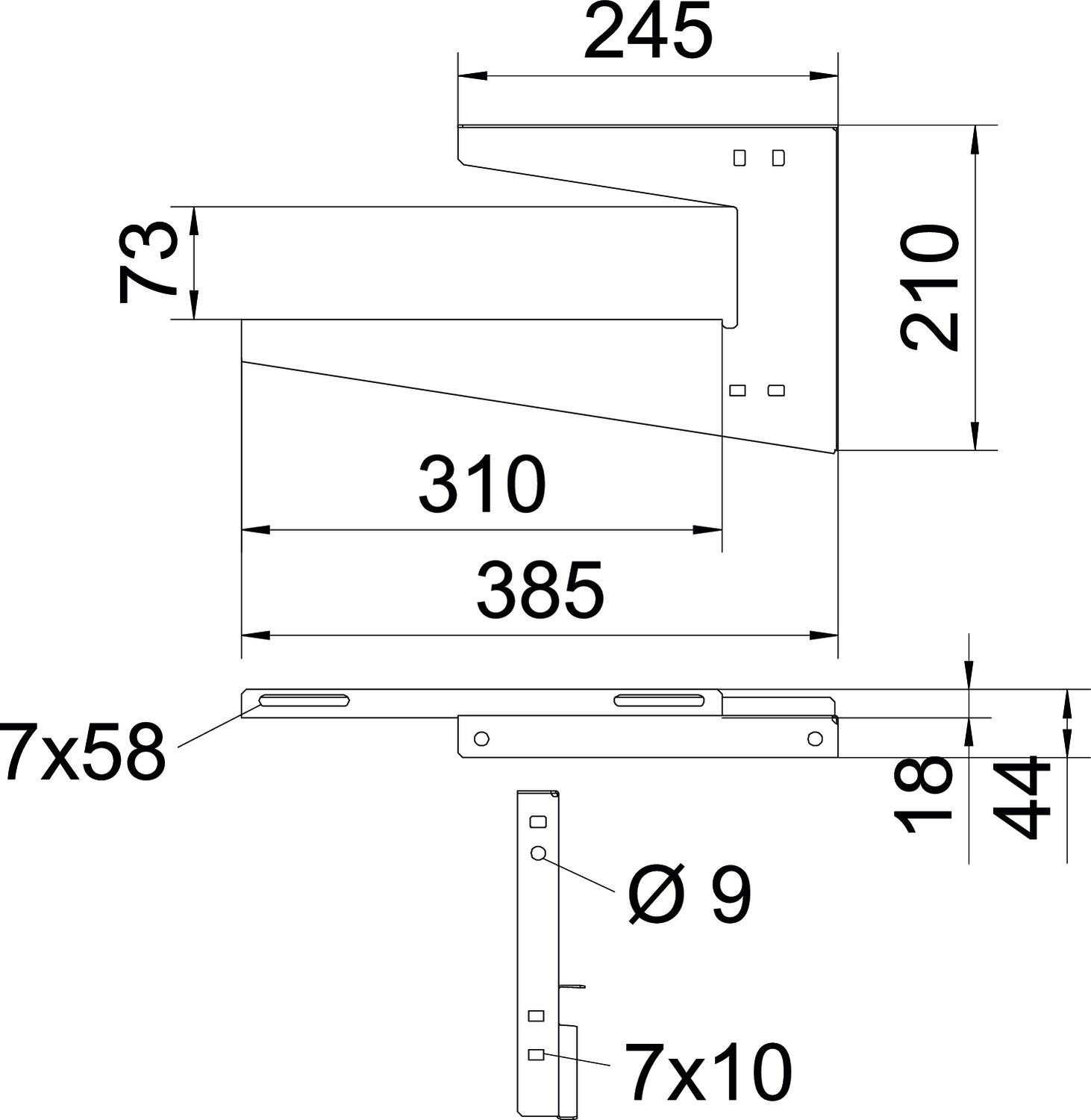 Adjustable no CO2 Footprint (GWP) Cradle-to-Gate 1,7632 kg CO2e / 1 Piece Colour zinc Dimension B300mm Dimension A 245 mm Dimension B 310 mm Dimension H 210 mm Dimension H1 (mm) 73 Dimension L 385 mm F in kN ceiling 0,2 kN F in kN wall 0,2 kN for width min. 300 Height 210 mm Hole diameter 7 mm Length 385 mm Maintain electrical functions no Material Steel Material thickness 1,25 mm Suitable for cable ladder yes Suitable for cable tray yes Suitable for mesh cable tray yes Suitable for metric threaded rod 8 Surface Strip galvanized Tray fastening Screw-on Version for Suspension bracket (C clamp) Width 310 mm - All types