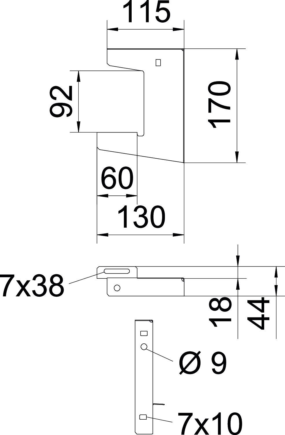 Adjustable no CO2 Footprint (GWP) Cradle-to-Gate 0,7181 kg CO2e / 1 Piece Colour zinc Dimension B50mm Dimension A 115 mm Dimension B 60 mm Dimension H 170 mm Dimension H1 (mm) 92 Dimension L 130 mm F in kN ceiling 0,4 kN F in kN wall 0,4 kN for width min. 50 Height 170 mm Hole diameter 7 mm Length 130 mm Maintain electrical functions no Material Steel Material thickness 1 mm Suitable for cable ladder yes Suitable for cable tray yes Suitable for mesh cable tray yes Suitable for metric threaded rod 8 Surface Strip galvanized Tray fastening Screw-on Version for Suspension bracket (C clamp) Width 60 mm - All types