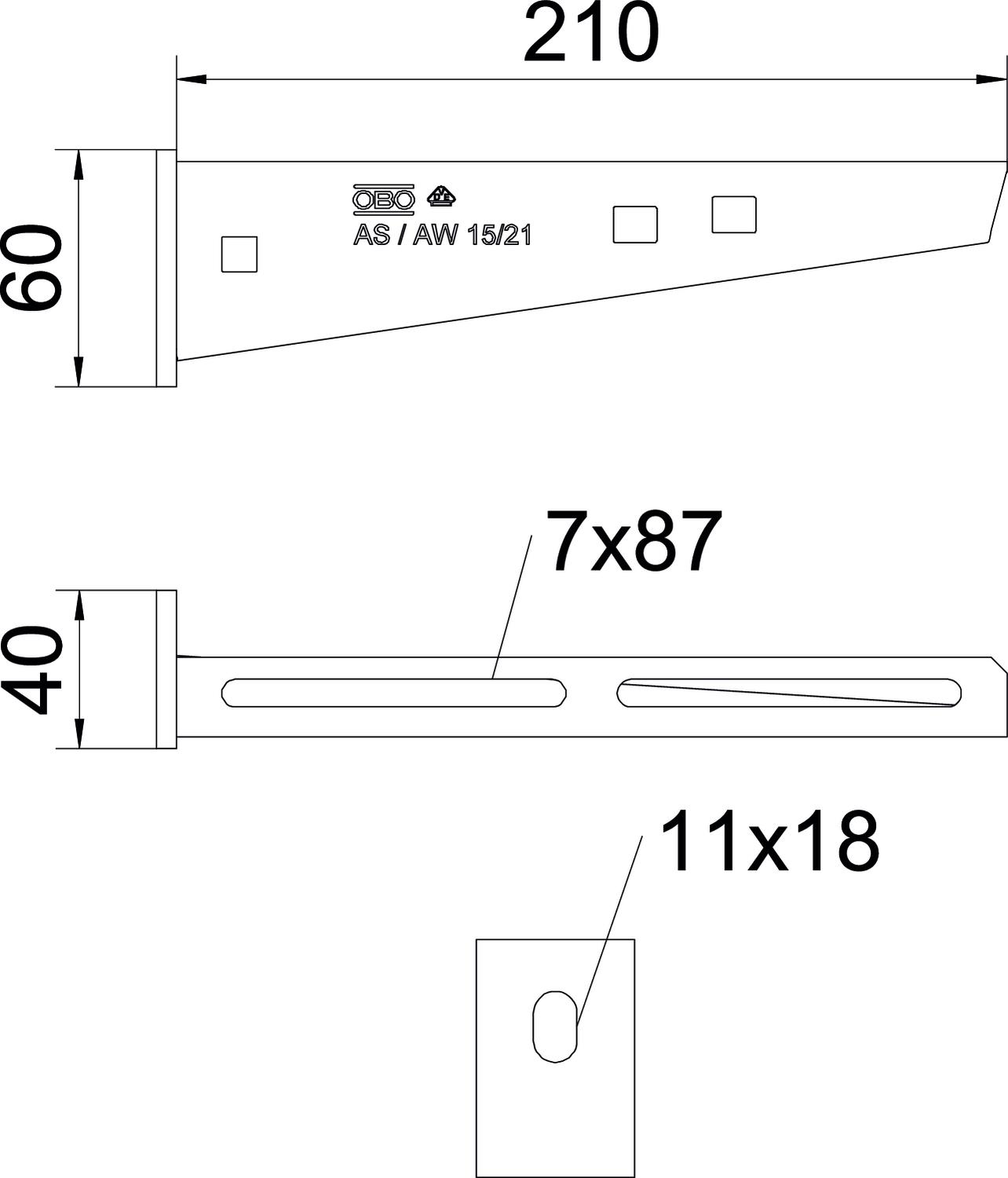 Angle range, max. 90 mm Angle range, min. 90 mm CO2 Footprint (GWP) Cradle-to-Gate 0,5831 kg CO2e / 1 Piece Colour zinc Dimension B210mm Dimension A 40 mm Dimension B 210 mm Dimension H 60 mm Dimension W 210 mm EPD article yes F in kN 1,5 kN Height 2,36 in Height 60 mm Hole diameter 11 mm Length 40 mm Maintain electrical functions yes Material Steel Rustproof steel, pickled no Surface Hot-dip galvanised Version for Wall and support bracket Width 8 in Width 210 mm Technical data