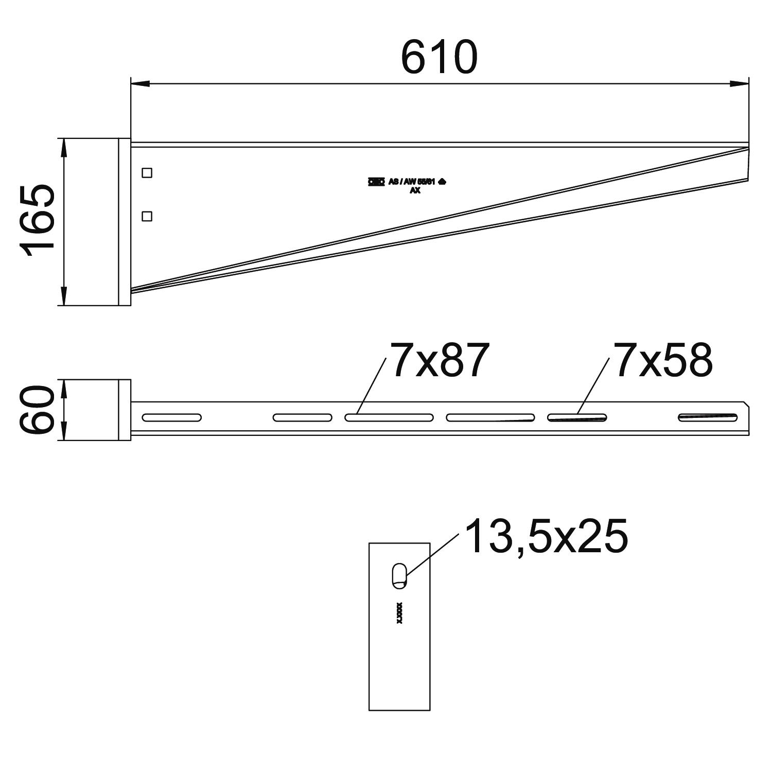 Angle range, max. 90 mm Angle range, min. 90 mm CO2 Footprint (GWP) Cradle-to-Gate 16,9747 kg CO2e / 1 Piece Colour stainless steel Dimension 610 mm Dimension A 60 mm Dimension B 610 mm Dimension H 165 mm F in kN 5,5 kN Height 165 mm Hole diameter 13,5 mm Length 60 mm Maintain electrical functions no Material Stainless steel 1.4301 Rustproof steel, pickled yes Surface Bright, treated Version for Wall and support bracket Width 610 mm Technical data