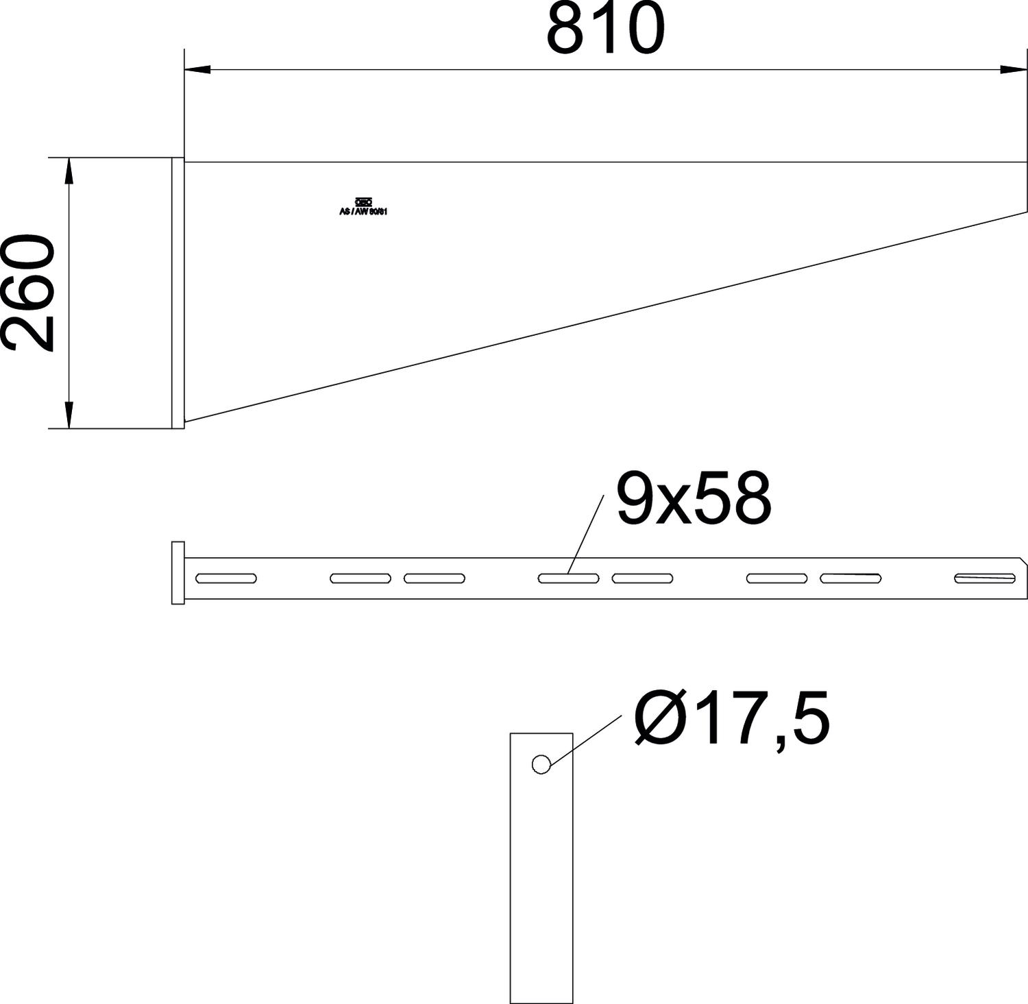 Angle range, max. 90 mm Angle range, min. 90 mm CO2 Footprint (GWP) Cradle-to-Gate 15,4548 kg CO2e / 1 Piece Colour zinc Dimension B810mm Dimension A 60 mm Dimension B 810 mm Dimension H 260 mm F in kN 8 kN Height 260 mm Hole diameter 17,5 mm Length 60 mm Maintain electrical functions no Material Steel Rustproof steel, pickled no Surface Hot-dip galvanised Version for Wall and support bracket Width 810 mm Technical data