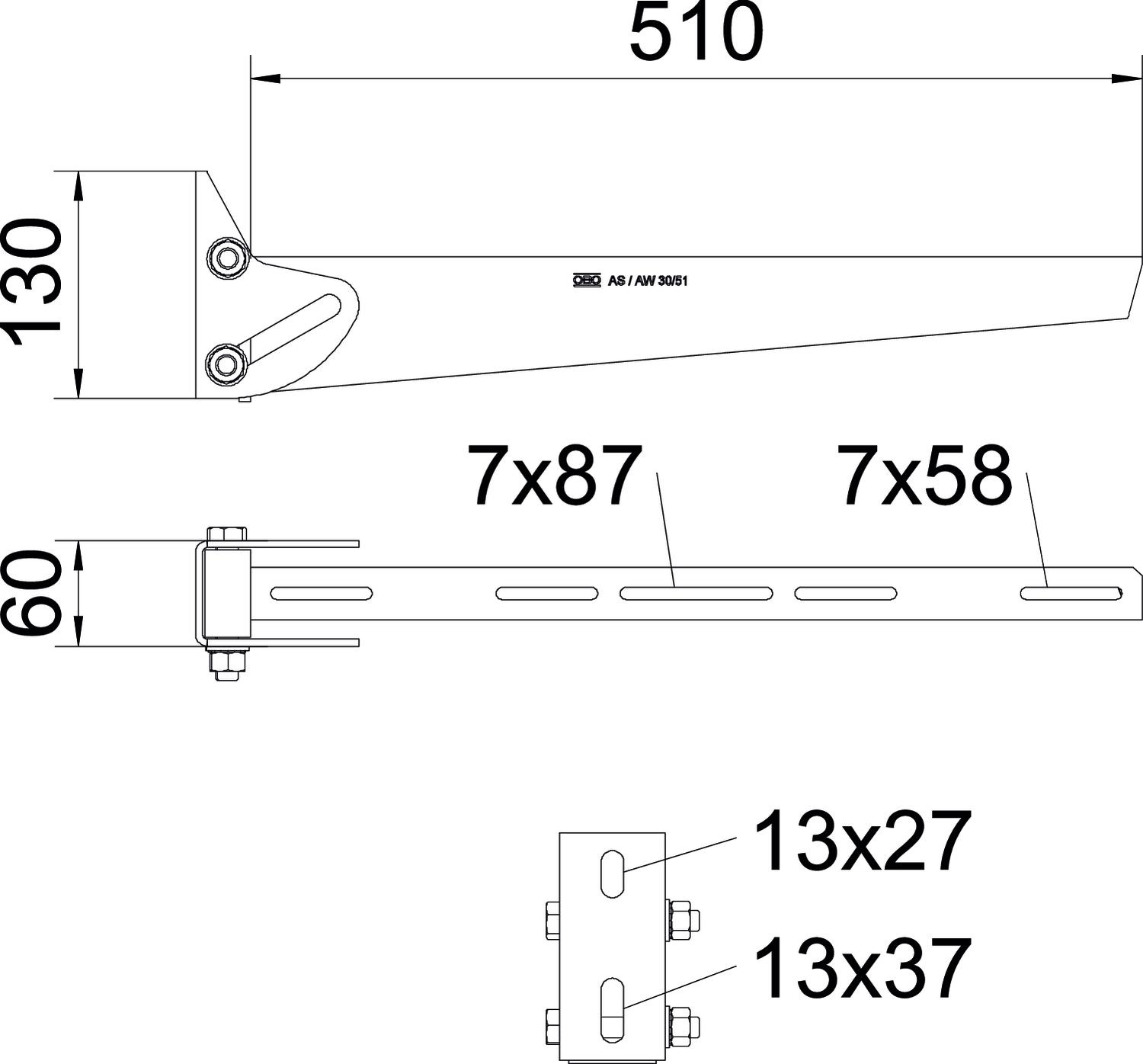 CO2 Footprint (GWP) Cradle-to-Gate 5,8623 kg CO2e / 1 Piece Colour zinc Dimension B510mm Dimension A 60 mm Dimension B 510 mm Dimension H 130 mm F in kN 0,9 kN for width max. 90 mm for width min. 60 Height 130 mm Hole diameter 13 mm Length 60 mm Maintain electrical functions no Material Steel Rustproof steel, pickled no Surface Hot-dip galvanised Version for Wall brackets Width 510 mm - All types
