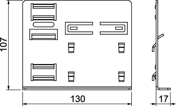 CO2 Footprint (GWP) Cradle-to-Gate 0,7393 kg CO2e / 1 Piece Colour zinc Dimension 130x107x17mm Fastening type Lockable for duct dimension 70x110 Height 17 mm Length 130 mm Material Steel Surface Strip galvanized Trunking mounting Attach and screw Version for Wall mounting Width 107 mm - All types