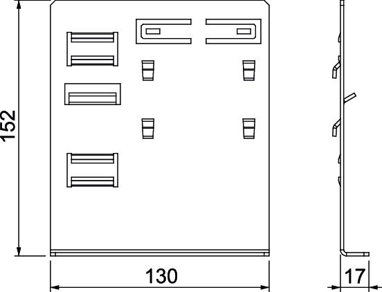 CO2 Footprint (GWP) Cradle-to-Gate 1,0266 kg CO2e / 1 Piece Colour zinc Dimension 130x152x17mm Fastening type Lockable for duct dimension 70x170 Height 17 mm Length 130 mm Material Steel Surface Strip galvanized Trunking mounting Attach and screw Version for Wall mounting Width 152 mm - All types
