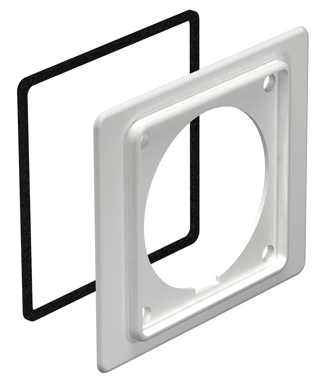 Product descriptionAdapter flange for mounting CEE 16 A sockets. During the mounting of the CEE mounting box, the adapter flange is mounted behind the trunking cover for accessory mounting boxes. Suitable for 400 V CEE 16 A 5-pin 6h, art. no. 6109874.