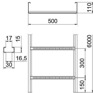 CO2 Footprint (GWP) Cradle-to-Gate 15,3508 kg CO2e / 1 Meter Colour zinc Dimension 110x500x6000 Dimension 110 x 500 Dimension B 500 mm Dimension L 6000 mm Fastening of rung Fully riveted Height 110 mm Length 6000 mm Maintain electrical functions no Material Steel Rail thickness 2 mm Rung slot dimension 17,00 Rustproof steel, pickled no Side perforation yes Side rail version Profile (open) Support spacing 3.0 m 2,9 kN/m Support spacing 3.5 m 2,48 kN/m Support spacing 4.0 m 2,1 kN/m Support spacing 4.5 m 1,78 kN/m Support spacing 5.0 m 1,5 kN/m Support spacing 6.0 m 1 kN/m Support spacing 7.0 m 0,7 kN/m Surface Strip galvanized Usable cross-section 471 cm² Usable cross-section 47100 mm² Version of the rungs Profile perforated Wide-span version yes Width 500 mm Technical data