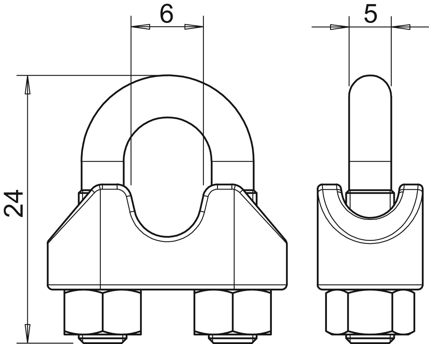 CO2 Footprint (GWP) Cradle-to-Gate 0,0733 kg CO2e / 1 Piece Dimension 5mm Dimension A 24 mm Dimension B 6 mm Dimension C 5 mm for cable diameter, min. 5 mm Material Stainless steel 1.4401 Surface Bright, treated Version for Not insulated - All types