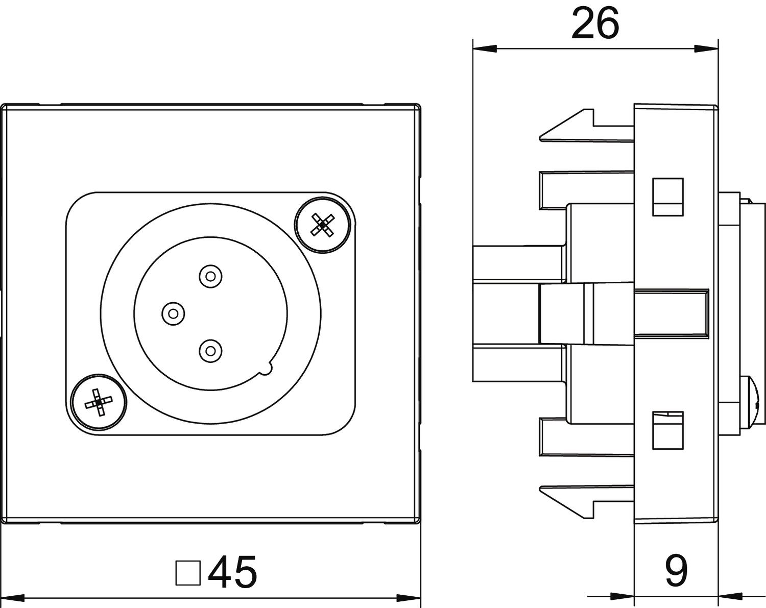 Product descriptionMultimedia support with one XLR connection socket, straight cable outlet, without labelling panel, 3-pin XLR socket with screw connection. Support plate with locking fastening, suitable for horizontal and vertical installation in the system environment.