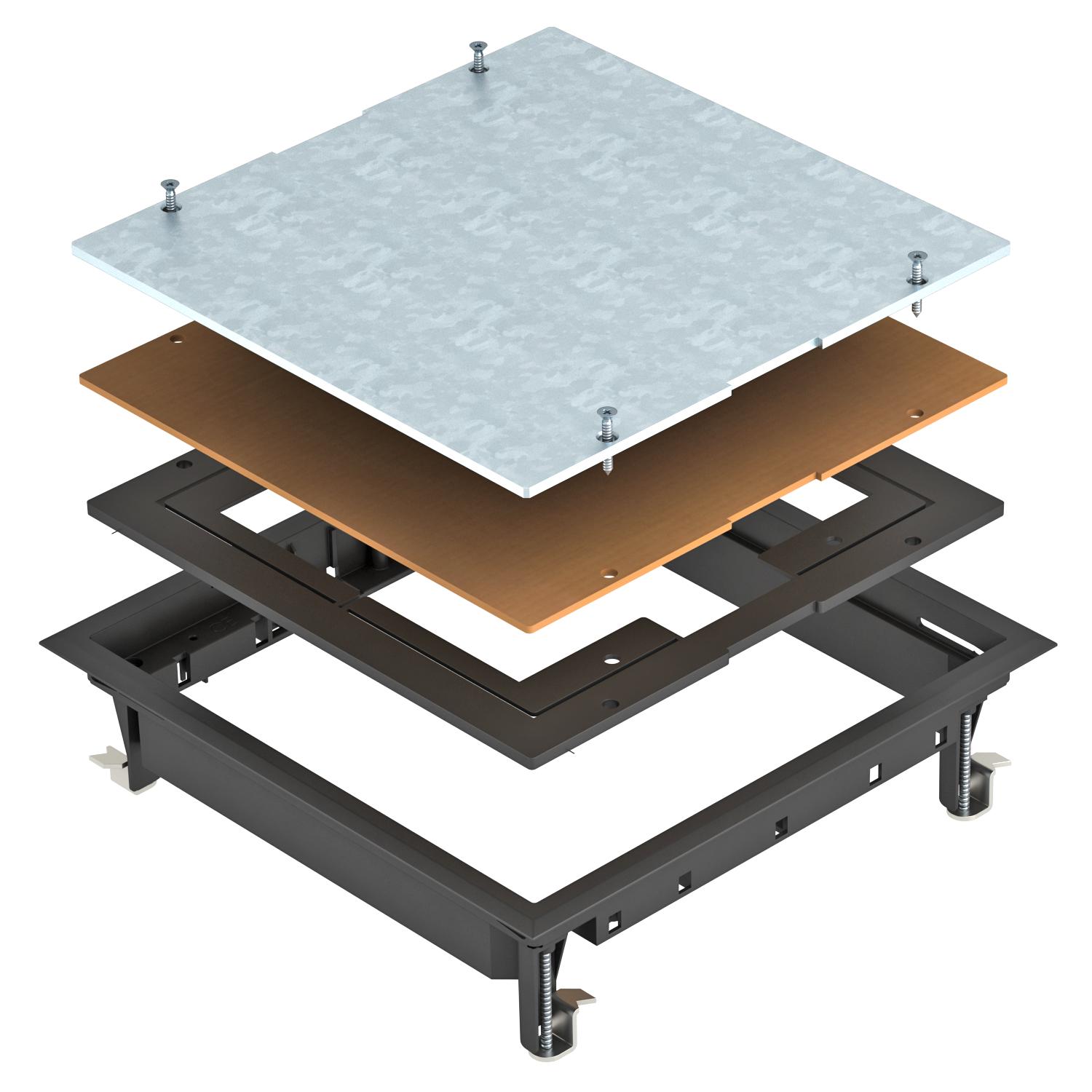 Product descriptionJunction box insert for blank closing of a square mounting opening of nominal size 9 in trunking systems and in raised and cavity floors for indoor use. Polyamide floor covering profile.