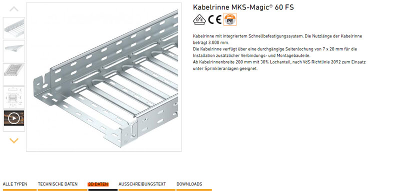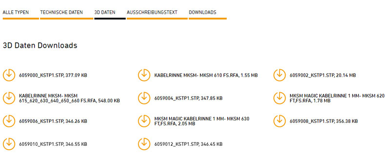 The quickest way to create a BIM project. Simply navigate to the article or search via the article number, select the required format and download it directly.